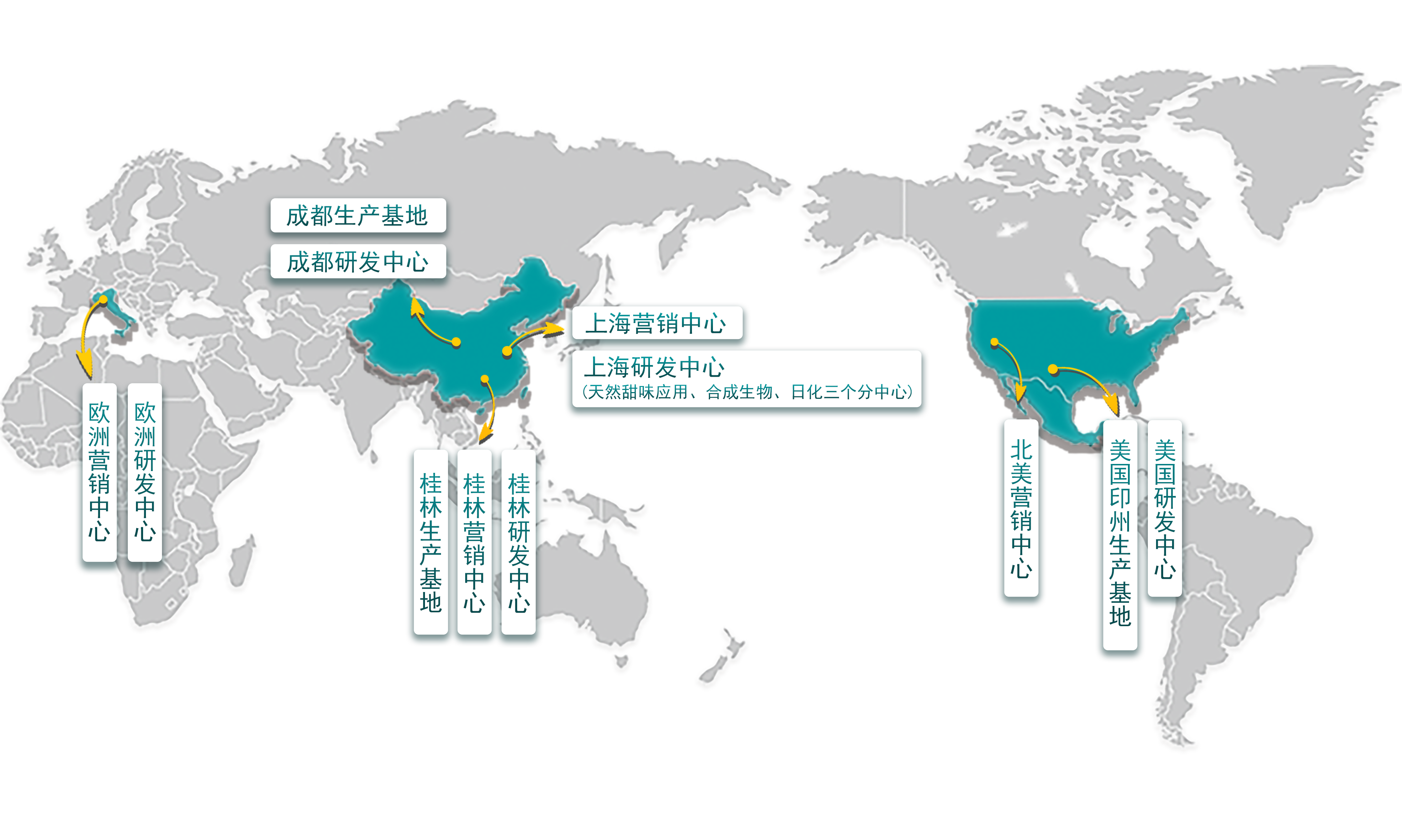 公司在全球建立了3大生产基地、4大营销中心和5大研发中心,掌握300多种天然植物成分的核心提取技术,持有100多项发明及实用新型专利。同时,公司拥有完整的质量认证体系,已通过cGMP、FAMI-QS、FSSC22000、IS09001等多项认证。每年为食品饮料、动物饲料、宠物营养、医药保健、日化护肤等行业客户提供优质的天然植物原料及全方位的健康解决方案,业务范围覆盖全世界60多个国家和地区。